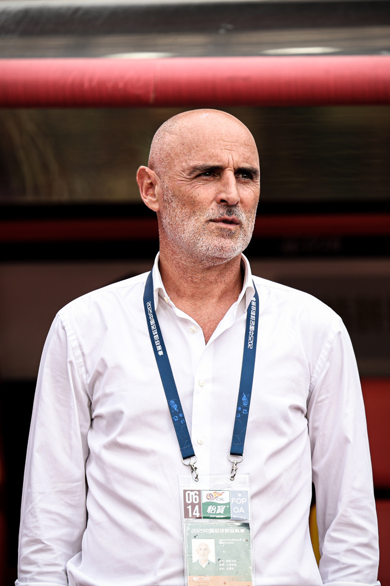 上海海港队主教练穆斯卡特在赛前仪式上 新华社记者 江汉 摄